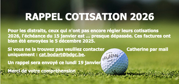 Remarque importante! Merci de ramener les chariots du club immédiatement après votre parcours et de nous les remettre propres